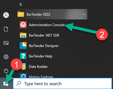 2. Choose BarTender - Administration Console, or just search for "Administration Console".