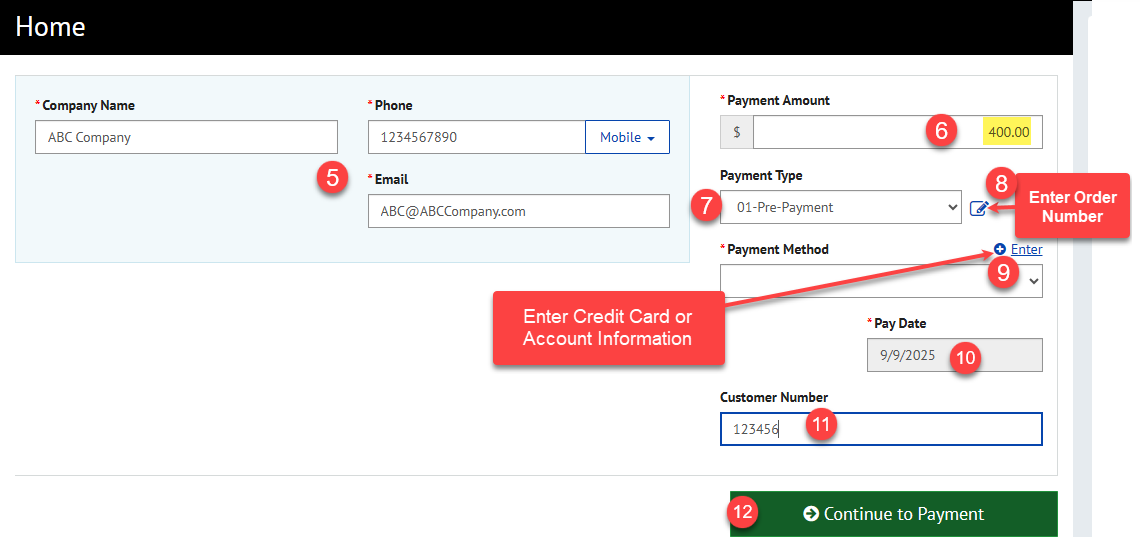 your Customer Number provided in the payment request email from Primera.