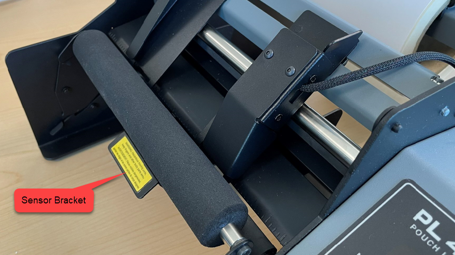 2. Turn the applicator upside down to locate the label sensor and pouch sensor. The pouch sensor is located closest to the front.