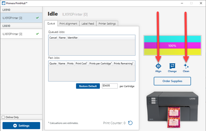 Below is an explanation of the Clean and Align buttons in PrintHub and Config Utility (Mac).